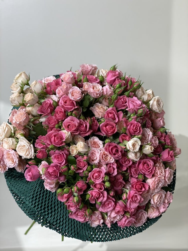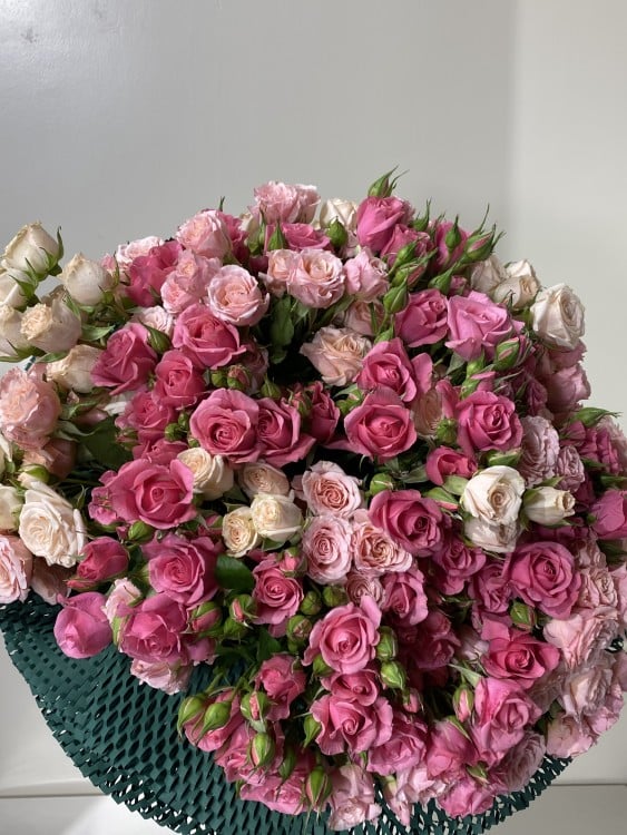 - بوكيه ورد وردي يعطي لمسة من الأناقة والتميز.